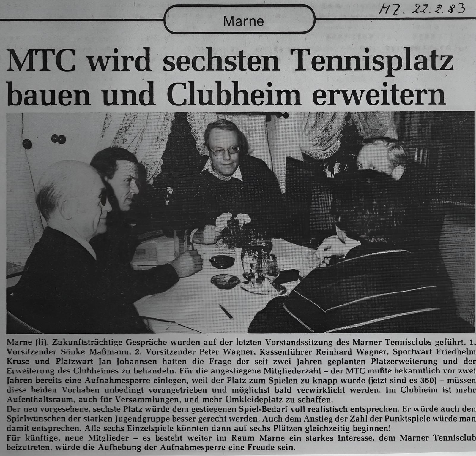 Der sechste Tennisplatz und die 1. Clubhaus Erweiterung 1983
